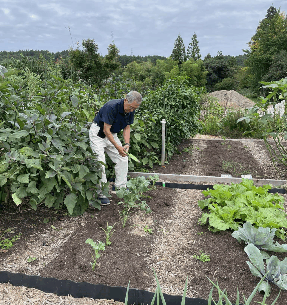 日本ノーディグ協会では、2025年5月から見本園づくりに着手し、日本の新潟県長岡市で、 土の上に段ボールを敷き、その上に堆肥を載せ、10センチ高さにならし、苗を植える、というステップでノーディグ菜園を作ってまいりました。茄子やピーマン、オクラやトマトなど次々に収穫することができました。